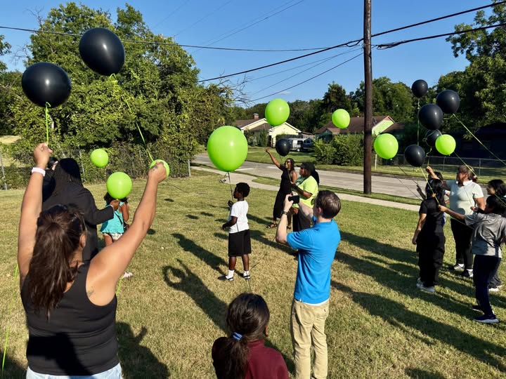 Parents and children released black and green balloons during a Parent Shield–hosted event in Fort Worth — a symbolic gesture of hope for improved reading rates across the city.